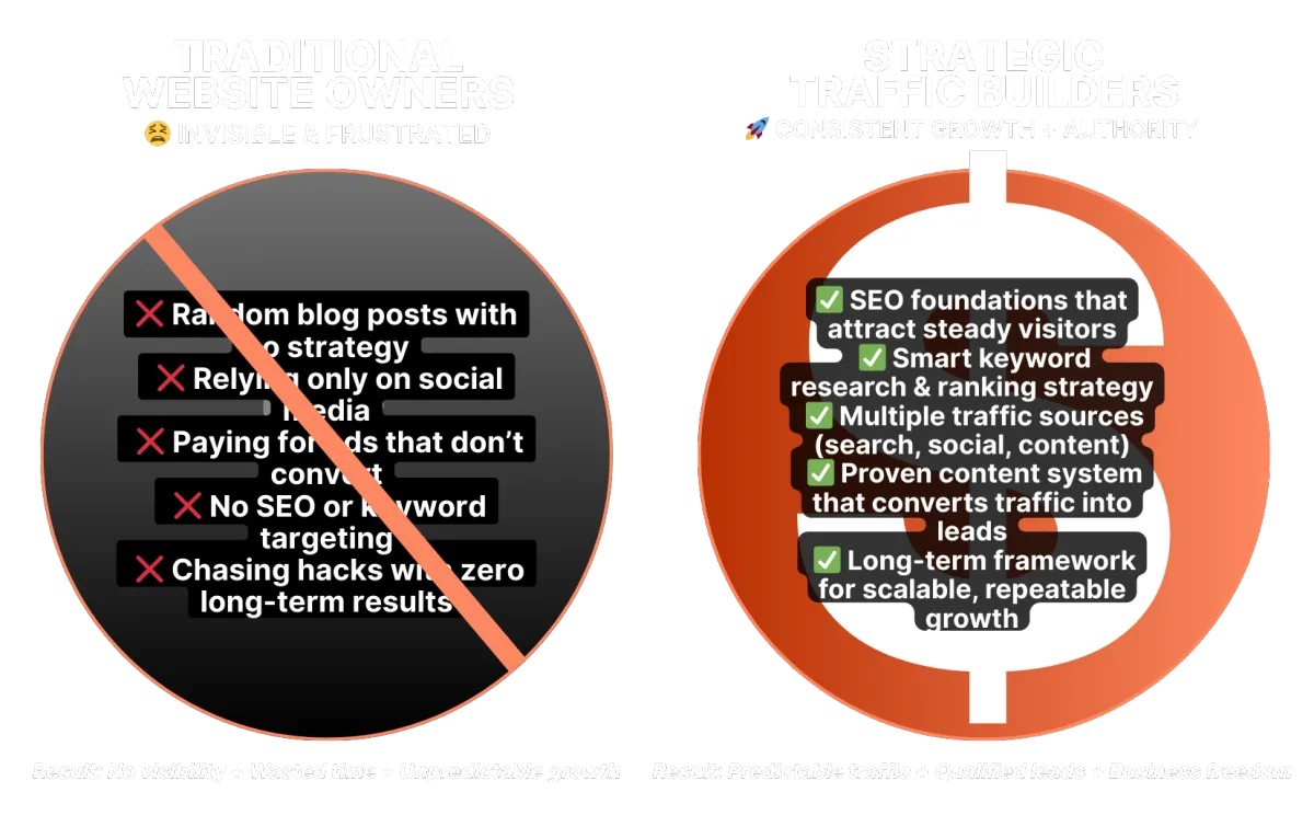This is why they stay stuck with websites that nobody visits, while others quietly build traffic empires that fuel six-figure businesses.